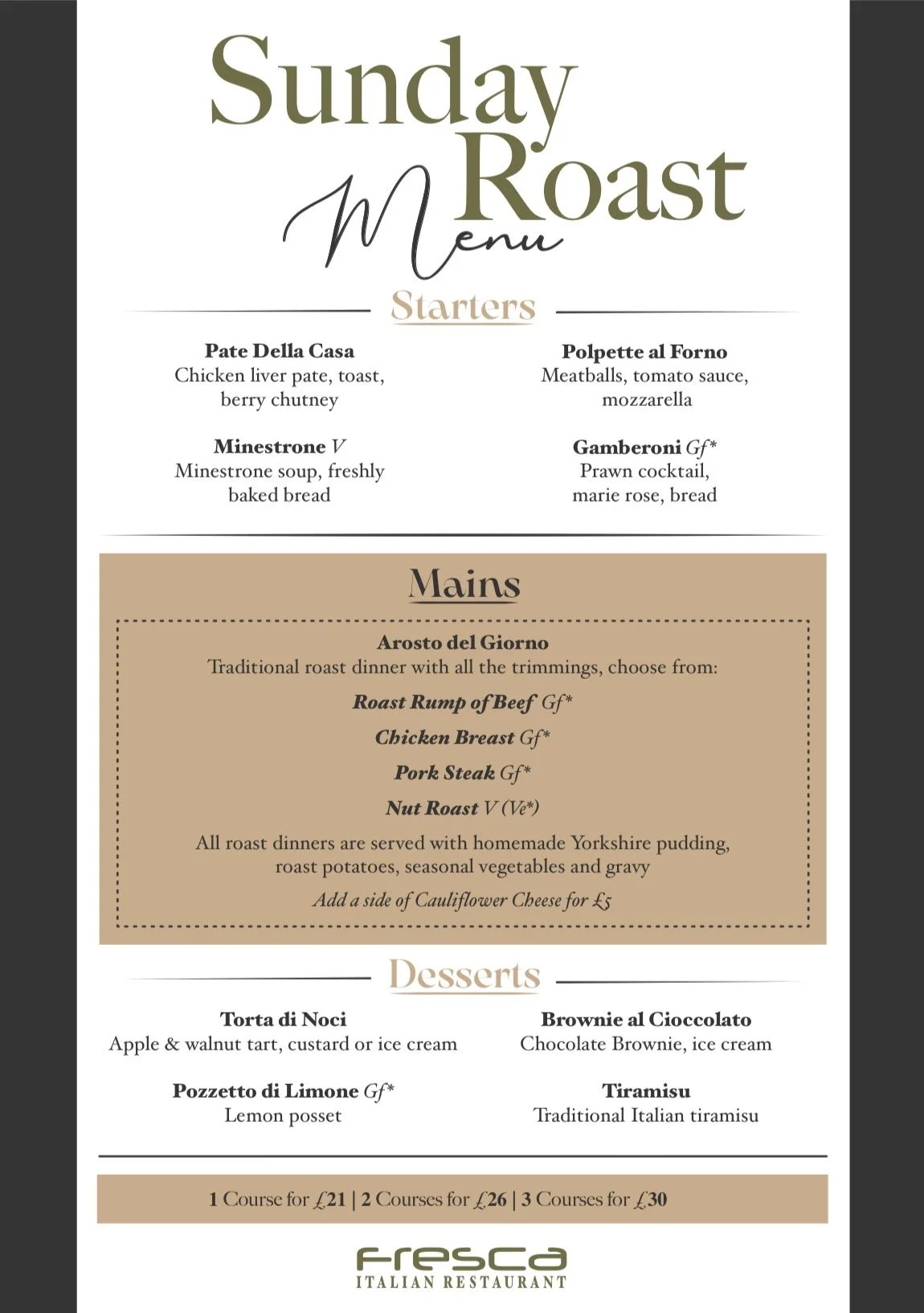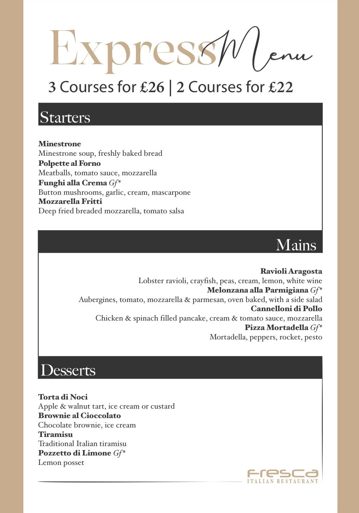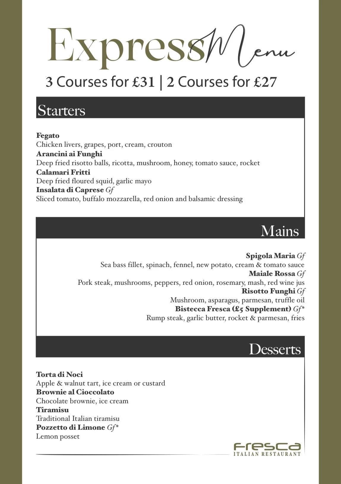 MAIN MENU FRESCA 〰️ FRESCA 〰️ FRESCA 〰️ SUNDAY ROAST MENU FRESCA 〰️ FRESCA 〰️ FRESCA 〰️ DESSERT MENU Express Menu